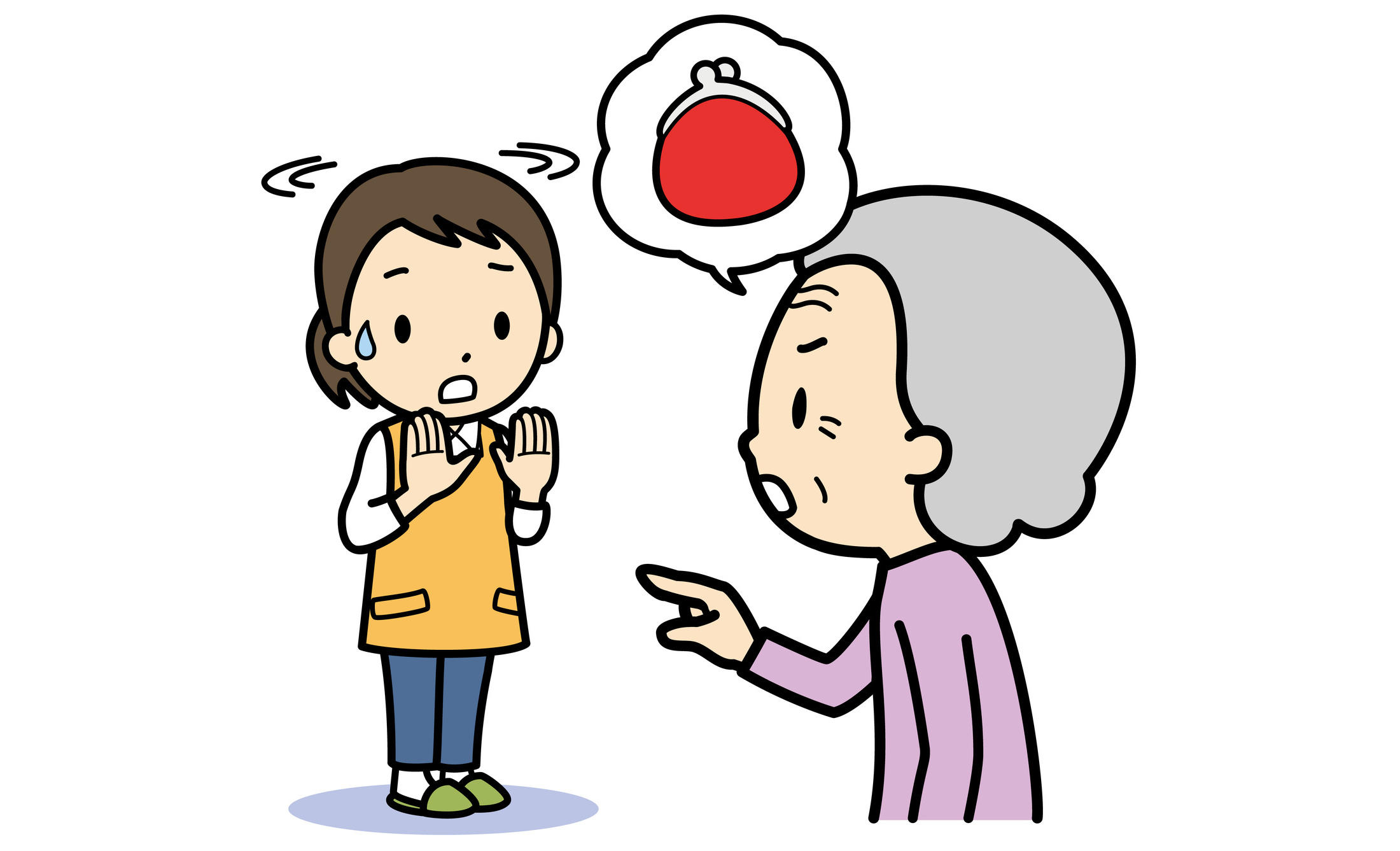 お財布が盗まれた等の「もの盗られ妄想」は、ご本人のお話に合わせることが基本です。否定しないで訴えをよく聴き、「一緒に探してみましょう」「調べてみますね」などのように対応します。また、ケアをする方がご高齢者から学ぶ姿勢を持つなどして対等な関係を築くと、心理的な負担が軽くなり被害妄想が改善する場合があります。